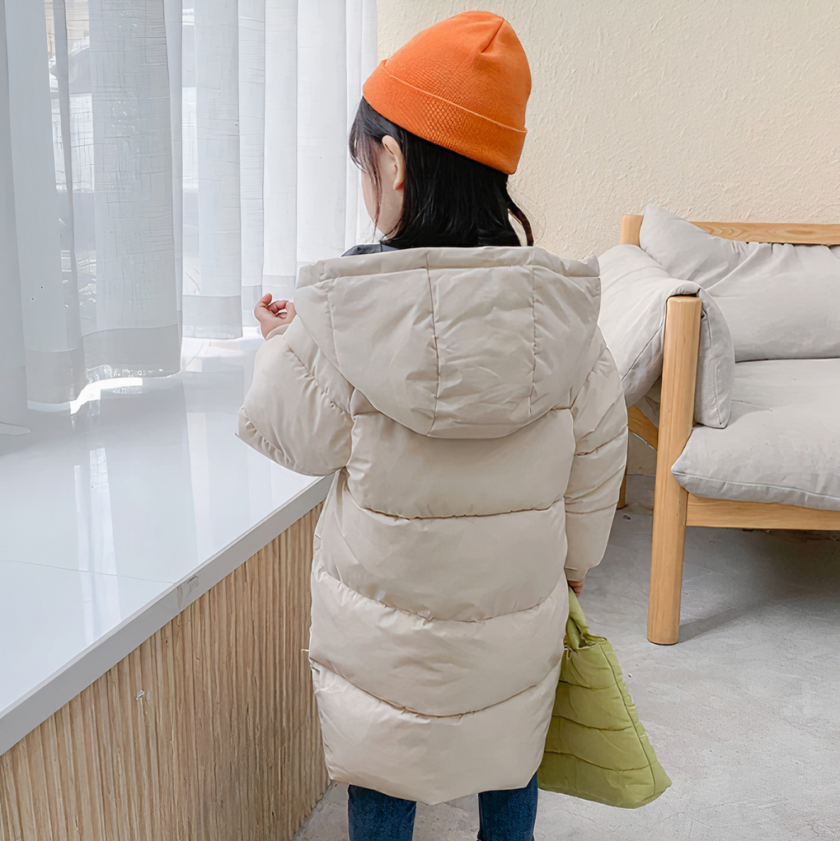 Cette doudoune beige est mi-longue pour les filles est fabriquée dans un tissu doux, elle est ultra-confortable à porter. La capuche protègera votre enfant contre le froid tandis que les poignets resserrés aideront à bloquer le vent qui peut s’engouffrer dans les vêtements trop larges.