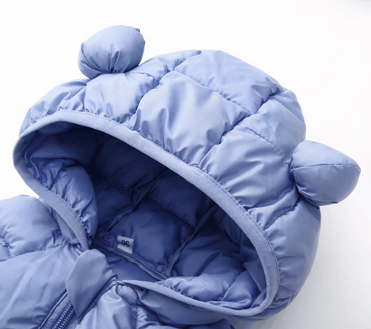 La capuche est dotée de deux petites oreilles. De plus, les poches zippées sur le devant sont pratiques pour ranger les petits objets.