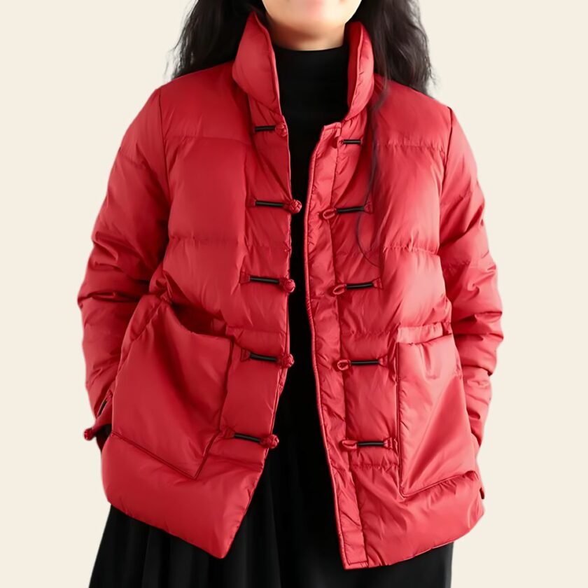 Cette doudoune courte inspirée du style traditionnel de Shanghai combine élégance et chaleur pour vous accompagner en toute saison. Ses fermetures grenouilles délicatement travaillées ajoutent une touche d’originalité qui ne passera pas inaperçue.