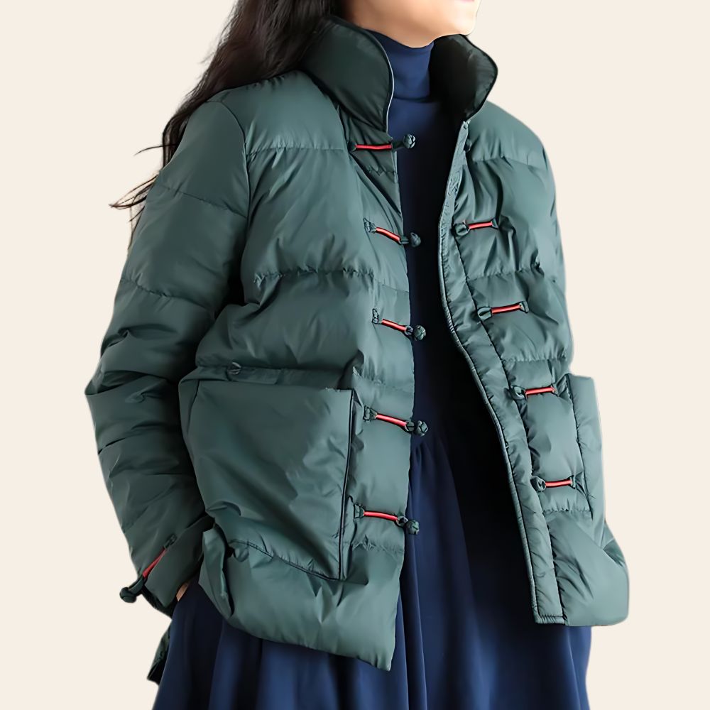 Cette doudoune courte inspirée du style traditionnel de Shanghai combine élégance et chaleur pour vous accompagner en toute saison. Ses fermetures grenouilles délicatement travaillées ajoutent une touche d’originalité qui ne passera pas inaperçue.