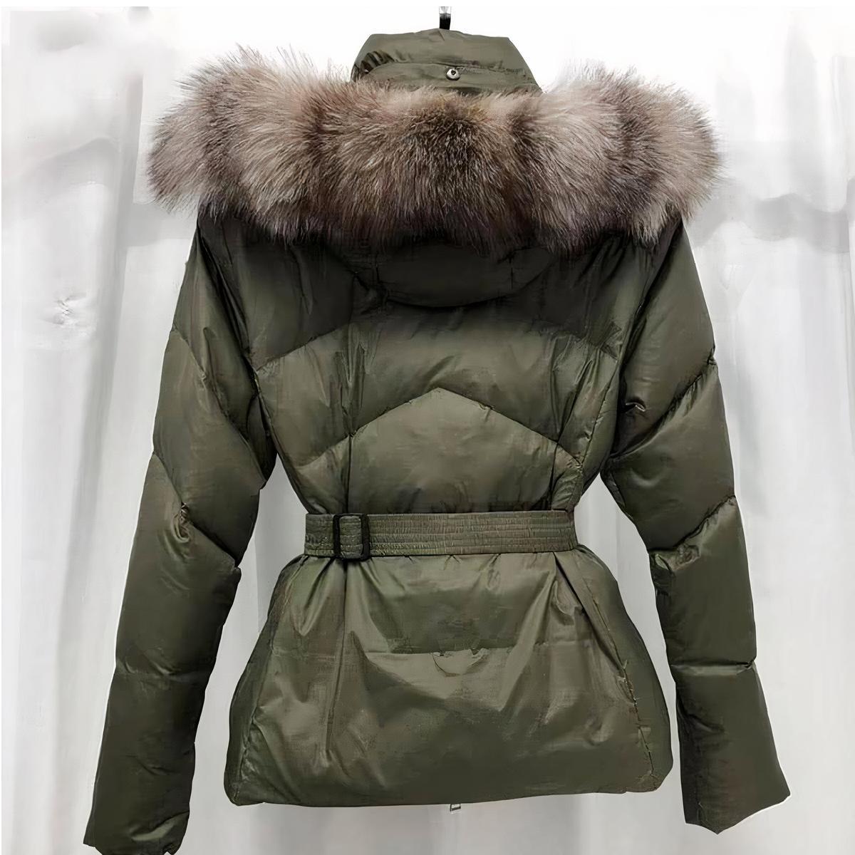 Doudoune kaki avec capuche à fourrure